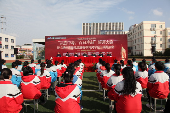 3月6日上午,由江蘇新能源置業(yè)集團(tuán)設(shè)立的新能源慈善教育獎(jiǎng)學(xué)金;頒獎(jiǎng)儀式在邗江區(qū)實(shí)驗(yàn)學(xué)校舉行。市民政局、市慈善總會(huì)、邗江區(qū)政府、邗江區(qū)教育局等相關(guān)領(lǐng)導(dǎo)出席頒獎(jiǎng)儀式?! ∈紫龋踅瓍^(qū)實(shí)驗(yàn)學(xué)校九年級(jí)全體同學(xué)進(jìn)行奮戰(zhàn)百日、超越自我、再創(chuàng)輝煌;決勝中考宣誓。接著,一批品學(xué)兼優(yōu)的初三學(xué)生登臺(tái)領(lǐng)取新能源慈善教育獎(jiǎng)學(xué)金,有50名學(xué)生獲得一等獎(jiǎng),每人獎(jiǎng)...