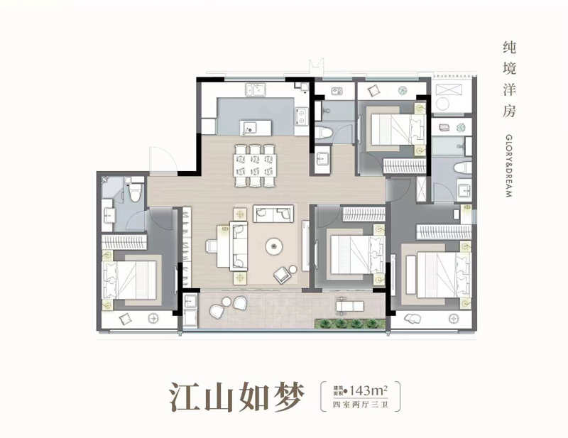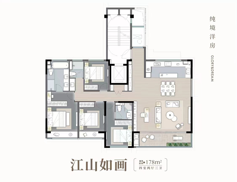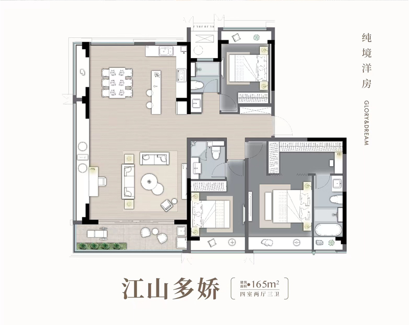 領(lǐng)創(chuàng)揚(yáng)州戶型設(shè)計(jì)典范、精著洋房,獨(dú)立玄關(guān),巨幕無柱寬廳,LDK一體化規(guī)制,縱享270°環(huán)幕觀景視野(建筑面積約165㎡戶型),每一眼皆讓人心懷澎湃。
