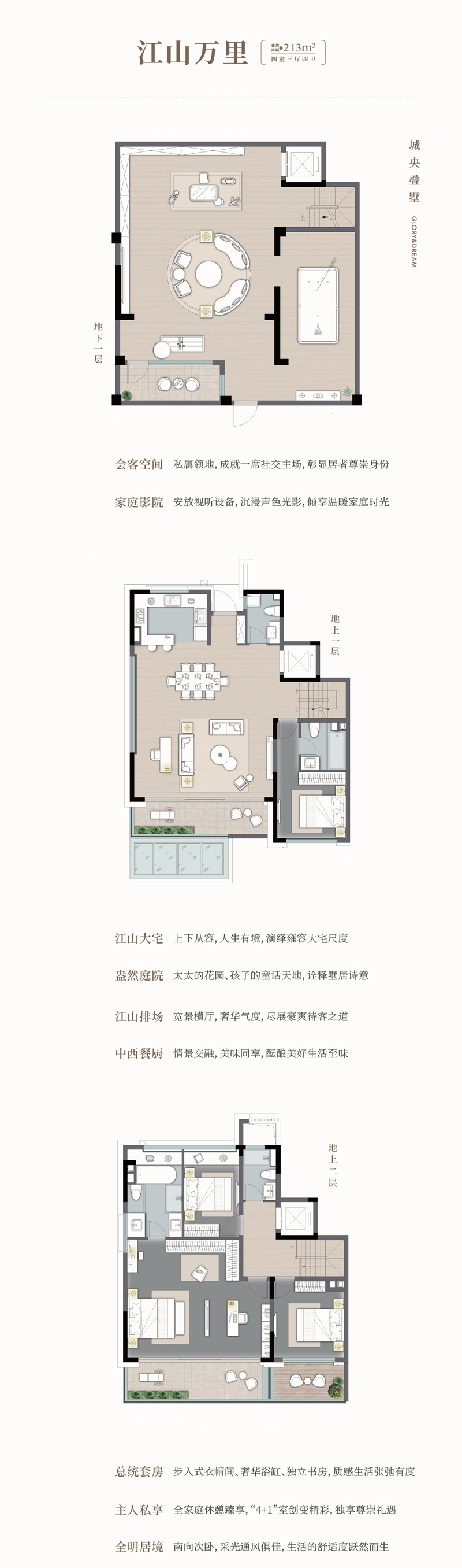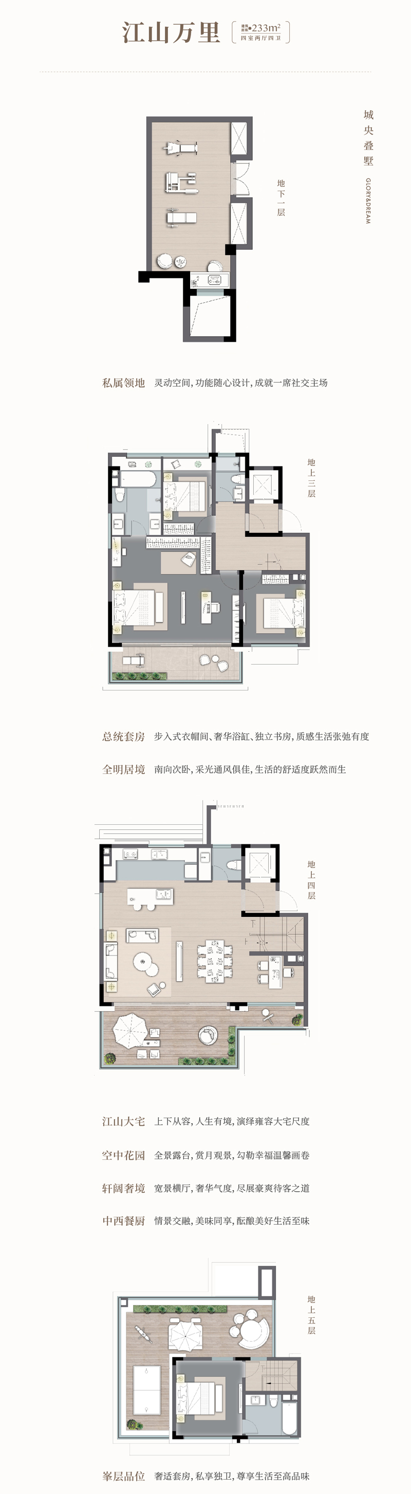 項(xiàng)目以「1.5低容積率」低密大境,規(guī)劃洋房(建面約109-216㎡)、疊加別墅(建面約213-233㎡)兩類產(chǎn)品,墅造全新居住境界,低層業(yè)態(tài)配有私家庭院,公共空間以江山畫境為魂,打造沉穩(wěn)渾厚、磅礴大氣的儒門禮序,構(gòu)建人景融合、居游一體的 “江山十境”規(guī)制,創(chuàng)造一個(gè)詩意居住、人文共榮、生活機(jī)能與精神棲居完美相融的東方意境。