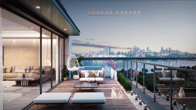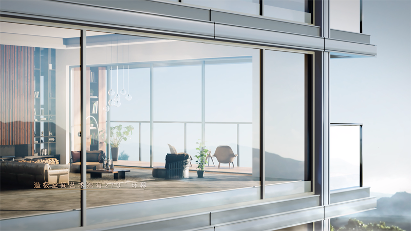窗墻比越高,室內(nèi)越通透明亮,當(dāng)前住宅窗墻比一般為0.25-0.35,而江山映做到了0.51,窗線比更是做到1:0.62的黃金比例,清透的巨幕玻璃以及柔邊鋁翼等設(shè)計(jì),建筑靈動(dòng)、通透,當(dāng)蔚藍(lán)的天空倒影其上,宛若立體海洋,又與天空融為一體。