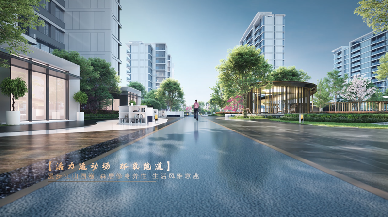 環(huán)繞整個(gè)項(xiàng)目設(shè)有森林健康慢跑系統(tǒng),打造運(yùn)動(dòng)休閑的森居景觀慢跑道,實(shí)現(xiàn)了環(huán)道對(duì)全園功能的連接。