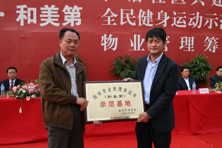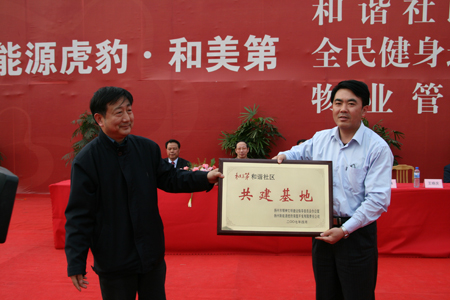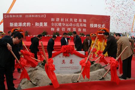 和美第項(xiàng)目繼承了新能源創(chuàng)新到永遠(yuǎn);的風(fēng)格,在生態(tài)、健康、運(yùn)動(dòng)風(fēng)格的基礎(chǔ)上首次在揚(yáng)城提出了和諧之風(fēng),并貫穿到前期規(guī)劃之中,連續(xù)召開了和諧社區(qū)標(biāo)準(zhǔn)座談會(huì)與和美第;和諧社區(qū)建設(shè)研討會(huì),并與市精神文明辦簽訂了和諧社區(qū)共建協(xié)議。同時(shí),為將和美第項(xiàng)目真正打造成和諧社區(qū),此次新能源物管將于前期即介入項(xiàng)目。此次奠基儀式不僅頒授了[新能源虎豹和美第]和諧社區(qū)共建基地、全民健身運(yùn)動(dòng)示范基地,還同時(shí)舉行了物業(yè)管理籌備組授牌儀式。