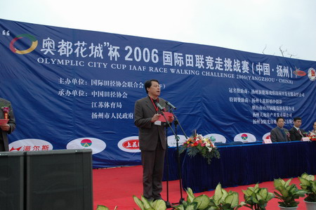 4月22日上午,春雨潤(rùn)后的揚(yáng)城古運(yùn)河畔更顯旖旎多姿,秀美如畫。來(lái)自中、澳、俄等10個(gè)國(guó)家的160名男女運(yùn)動(dòng)員在此參加了20公里的競(jìng)走盛會(huì)。市委副書記洪軍,國(guó)家體育總局田徑運(yùn)動(dòng)管理中心主任羅超毅、江蘇省體育局副局長(zhǎng)周旭等出席開幕式,副市長(zhǎng)孫永如致開幕詞,獨(dú)家冠名單位新能源虎豹公司董事長(zhǎng)包廣林發(fā)表講話。