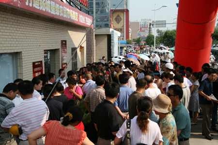 雖然盛夏初至,但高溫難抵市民的投資熱情。7月18日,新能源.金茂廣場之蘭苑農(nóng)貿(mào)市場預(yù)約登記第一天,就有300多戶客戶蜂擁而至,再度掀起西區(qū)房產(chǎn)投資熱潮。