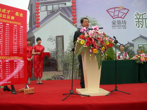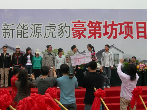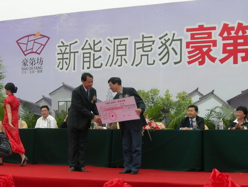 4月30日,新能源;又推新項目,位于儀征新集鎮(zhèn)的豪第坊;項目舉行開工奠基儀式。 豪第坊;項目占地近480畝,是由獨棟別墅、聯(lián)排別墅、情景洋房、沿河觀景洋房等多種建筑形態(tài)組成的高品位大型社區(qū)。豪第坊;項目將把漢文化、鹽商文化和農(nóng)耕文化進(jìn)行提取和糅合,深度詮釋骨子里的揚州;這一核心理念。今年國慶節(jié)期間該樓盤將上市銷售。同時,豪第坊;項目形象代言人楊婧小姐,將項目代言費2萬元捐給揚大管理學(xué)院,江蘇新能源置業(yè)集團(tuán)公司與揚州新能源虎豹房屋開發(fā)有限公司的干部職工也向揚大捐獻(xiàn)了9.2萬元的愛心助成才;基金。