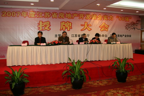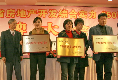 由江蘇省建設(shè)廳、江蘇省房地產(chǎn)業(yè)協(xié)會(huì)聯(lián)合主辦的江蘇省2007年度房地產(chǎn)開(kāi)發(fā)綜合實(shí)力50強(qiáng);企業(yè)的評(píng)選活動(dòng)。本著公開(kāi)、公正、公平的原則,對(duì)照50強(qiáng);企業(yè)的評(píng)選標(biāo)準(zhǔn),專家組經(jīng)過(guò)嚴(yán)格考評(píng),于二〇〇八年十一月二十七日,在南京市華美達(dá)怡華假日酒店舉行了授牌儀式。江蘇新能源置業(yè)集團(tuán)有限公司再次蟬聯(lián)江蘇省房地產(chǎn)開(kāi)發(fā)綜合實(shí)力50強(qiáng);稱號(hào)。這是江蘇新能源置業(yè)集團(tuán)第五次獲此殊榮。
