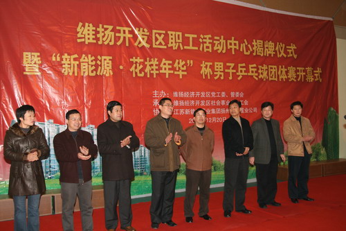 12月20日上午,剛剛落成的維揚開發(fā)區(qū)職工活動中心舉行了隆重的揭牌儀式和新能源花樣年華;杯男子乒乓球團體賽開幕式。