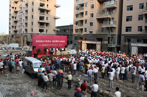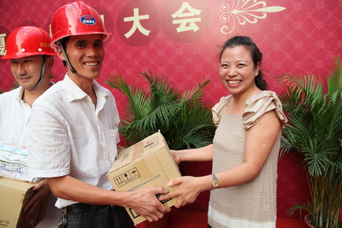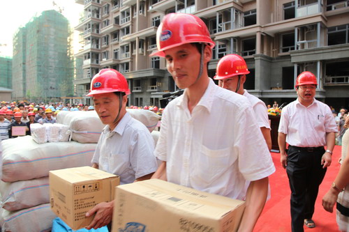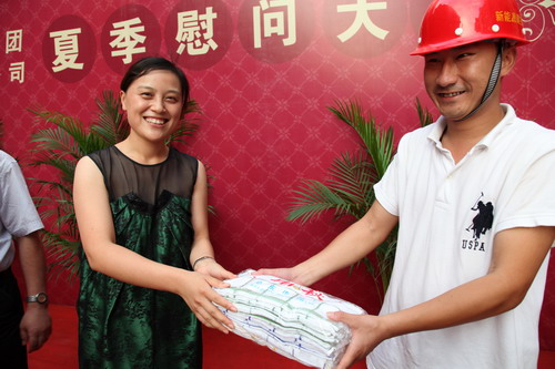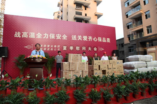 8月7日下午,陽光美第工地上鑼鼓喧天,彩旗飄揚(yáng),新能源公司在這里隆重舉行了夏季慰問大會(huì)。新能源集團(tuán)董事長包廣林、新能源虎豹公司顧載兵等公司領(lǐng)導(dǎo)出席了慰問大會(huì)。 今年高溫天氣遲遲不退,對于奮斗在一線的工人,公司領(lǐng)導(dǎo)看在眼里、記在心中,花了近萬元為建設(shè)工人購買了毛巾、香皂等防暑用品。