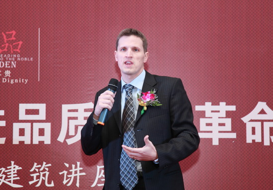 加拿大駐上??傤I(lǐng)事館領(lǐng)事兼商務(wù)專員司馬天明先生首先致詞,他從全球氣候的變化闡述了開發(fā)木結(jié)構(gòu)住宅的戰(zhàn)略意義。加拿大木業(yè)協(xié)會中國區(qū)總裁史瑞德先生全面介紹了加拿大木結(jié)構(gòu)建筑在中國的發(fā)展前景。加拿大木業(yè)協(xié)會市場傳訊總監(jiān)Dave先生作了木結(jié)構(gòu)建筑的主旨演講,他首先介紹了木結(jié)構(gòu)建筑的概況,現(xiàn)代輕型木結(jié)構(gòu)和中國傳統(tǒng)木結(jié)構(gòu)的區(qū)別,然后著重講解了木結(jié)構(gòu)在防震抗震、防水防蛀、保溫保濕、優(yōu)質(zhì)低碳、造型美觀等方面具有的鮮明特色。他特別強調(diào),名門壹品木結(jié)構(gòu)建筑作為加拿大木業(yè)協(xié)會和新能源;合作成功的典范,在中國成為樣板。