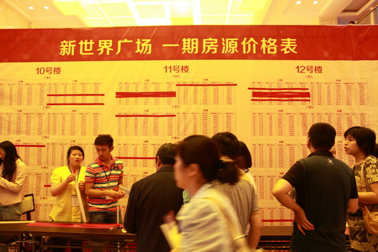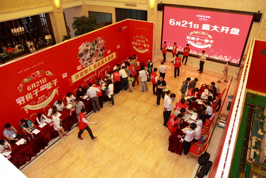 6月21日是新能源新世界廣場首期8幢小高層開盤的日子,一大早,泰興市民就從四面趕來,將臨時搭建的擁有2000個座位的搖號大棚坐得滿滿,市民憑搖出的號碼進(jìn)入銷售大廳選房購房。據(jù)統(tǒng)計,開盤3小時就勁銷300余套。