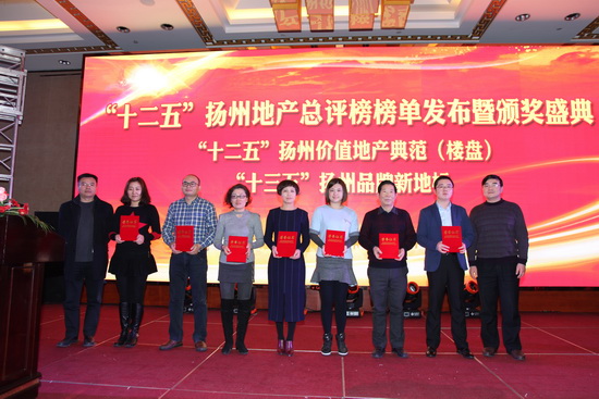 2016年1月28日,由揚(yáng)州報(bào)業(yè)傳媒集團(tuán)主辦、江蘇江南大業(yè)傳媒股份有限公司承辦的十二五;揚(yáng)州地產(chǎn)總評(píng)榜榜單發(fā)布暨頒獎(jiǎng)盛典在揚(yáng)州金陵大飯店舉行。全市各房地產(chǎn)商代表、專家及有關(guān)領(lǐng)導(dǎo)出席盛典。