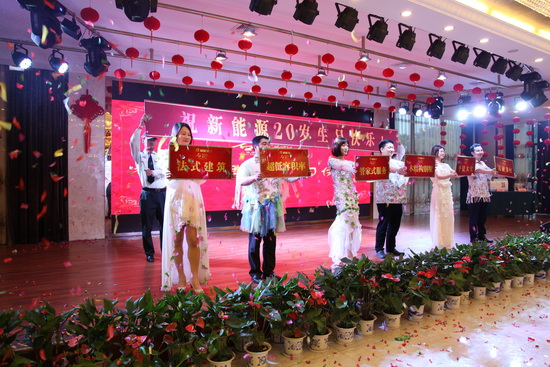 在慶典晚會(huì)上,各部門(mén)表演了精彩的文藝節(jié)目。集團(tuán)公司領(lǐng)導(dǎo)為輝煌20年 我心中的新能源;征文獲獎(jiǎng)?wù)哳C獎(jiǎng)。晚會(huì)現(xiàn)場(chǎng)還穿插了抽獎(jiǎng)活動(dòng)。晚會(huì)結(jié)束時(shí),豪第坊大型噴火噴泉秀,讓與會(huì)人員流連忘返,把氣氛推向高潮。
