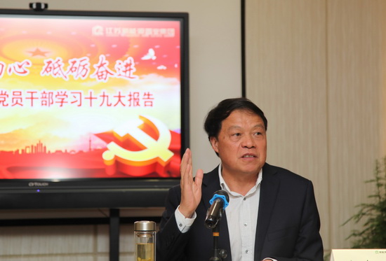 2017年10月26日下午,江蘇新能源置業(yè)集團組織黨員干部在星座國際大廈21層會議室學習習近平總書記在黨的十九大開幕式上的報告。