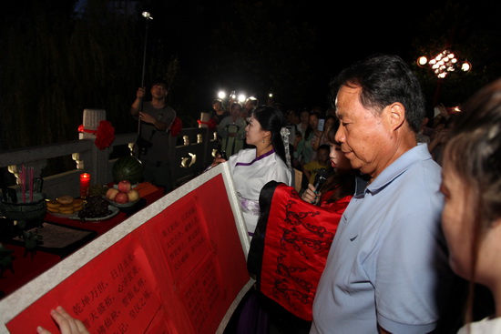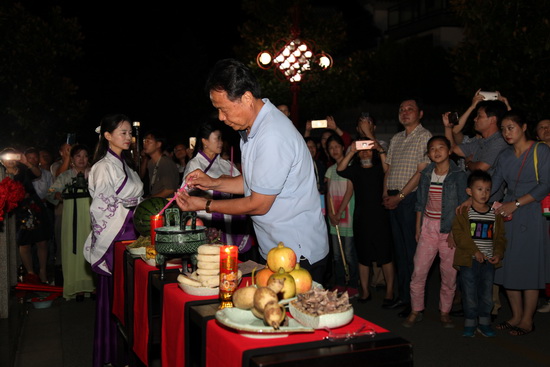 晚宴結(jié)束之后,在舒緩優(yōu)雅的樂曲聲中,拜月儀式正式開始。主拜江蘇新能源置業(yè)集團董事長包廣林點燃三炷香,向月神鞠躬、上香,6名嫦娥;分列左右,廣大業(yè)主在主拜的引導下紛紛向月神祈愿,共同為美好明天和幸福生活祈福,一場古老的拜月儀式;完美上演。