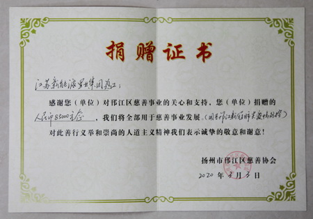 捐款獻(xiàn)愛心,合力戰(zhàn)疫情。江蘇新能源置業(yè)集團(tuán)項目公司(書香一品項目)日前已為抗擊疫情捐款20萬元。3月1日,江蘇新能源置業(yè)集團(tuán)董事長包廣林倡議全體員工踴躍捐款,支持邗江區(qū)新冠肺炎疫情防控。全體員工積極響應(yīng),僅僅一天時間就捐款85000元。3月3日上午,集團(tuán)總裁王秋云帶著募集到的款項,來到邗江區(qū)慈善總會,表達(dá)新能源人的一片慈心善意。邗江區(qū)慈善總會會長潘恒惠說,這是全區(qū)第一家企業(yè)送來的職工捐贈款,新能源;為全區(qū)樹立了榜樣。