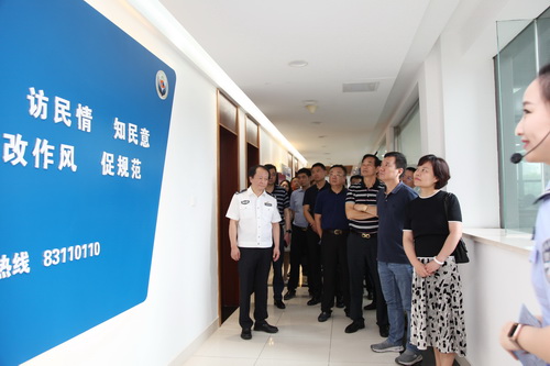 活動(dòng)首先進(jìn)行參觀,在市公安局劉毅副局長(zhǎng)及相關(guān)負(fù)責(zé)人陪同下,大家走進(jìn)市公安局民意訪評(píng)中心聽取情況介紹;然后乘車前往東關(guān)街實(shí)地察看二維碼門牌和人臉識(shí)別系統(tǒng);接著又來到市公安局大數(shù)據(jù)指揮中心了解城市管理情況。