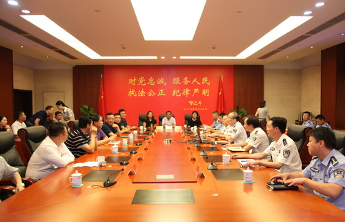 參觀結(jié)束后交流座談,副市長(zhǎng)、市公安局局長(zhǎng)宮文飛向大家介紹了全市公安工作及城市治理情況,著重介紹這些年公安工作從人民群眾滿意的事情做起,從人民群眾不滿意的問題改起,揚(yáng)州社會(huì)治安工作得到市委市政府的充分肯定和全市人民的充分認(rèn)可,揚(yáng)州人民幸福度、滿意度不斷提升。揚(yáng)州市房地產(chǎn)商會(huì)會(huì)長(zhǎng)包廣林在講話中,感謝公安干警為基層服務(wù)到位,為企業(yè)排憂解難,為市民創(chuàng)造平安。
