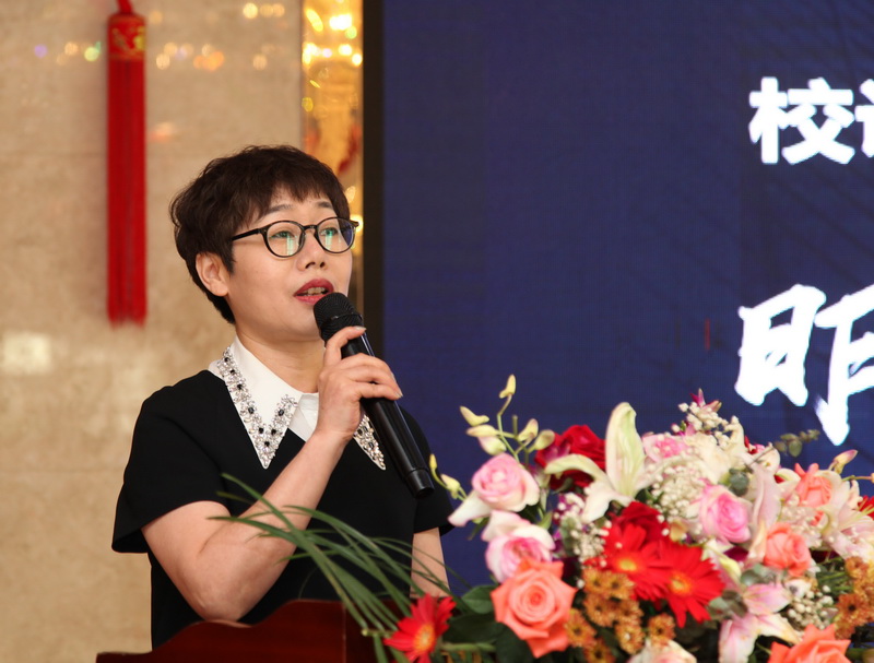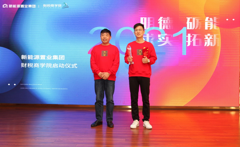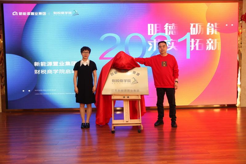 在熱烈的掌聲中,總裁王秋云和院長(zhǎng)丁璟瑤共同為“財(cái)稅商學(xué)院”揭牌。