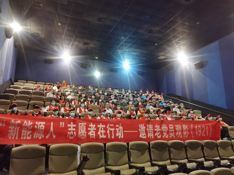 “新能源”立足揚(yáng)州,開發(fā)了30多個(gè)高質(zhì)量的居住小區(qū)。“七一”來(lái)臨,新能源置業(yè)黨支部組織黨員志愿者,登門走訪了居住在各個(gè)新能源小區(qū)的40年黨齡以上的近100位老黨員,送上慰問品,征求他們對(duì)物業(yè)服務(wù)工作的意見和建議。7月17日,新能源置業(yè)黨支部專門包了一輛大巴車,到各個(gè)小區(qū)接送這些老黨員,邀請(qǐng)他們觀看電影《1921》,進(jìn)行了一次生動(dòng)形象的黨史宣傳教育。